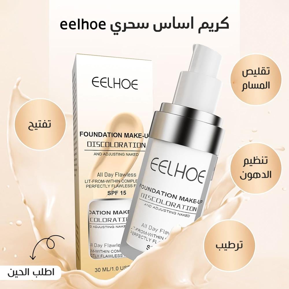 استمتعي بإطلالة طبيعية ومثالية مع فاونديشن ابيض سحري eelhoe واطلبيه الآن من متجر evesecrets لتنعمي بجمال يدوم طوال اليوم وثقة تبدأ من لمسة واحدة.